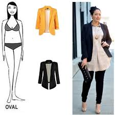 Oval - O ideal é valorizar a parte mais fina – nesse caso, os braços e as pernas. O colo deve estar sempre à mostra e ser valorizado com colares curtos ou broches. O look deve criar linhas verticais, seja com echarpes soltas, linhas de botões, zíperes para alongar e dar ilusão de um corpo mais fino. Túnicas, camisas, blazers usados abertos e blusas com decotes ou detalhes verticais são ótimas opções para disfarçar a barriga. É legal deixar a pele do colo ou dos braços à mostra e é bom destacar que os decotes em V e mangas curtas valorizam essas regiões.