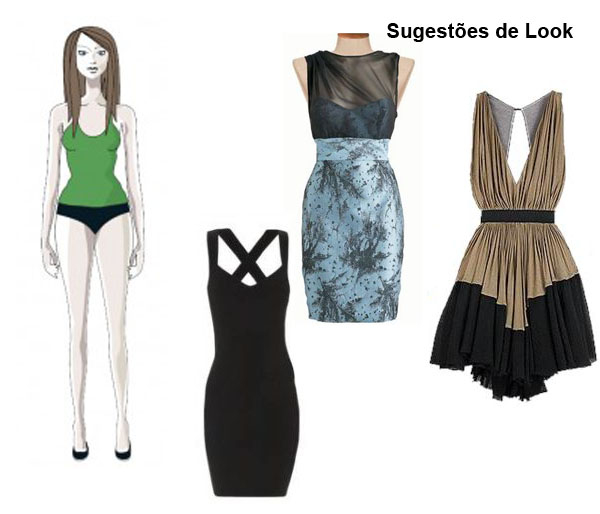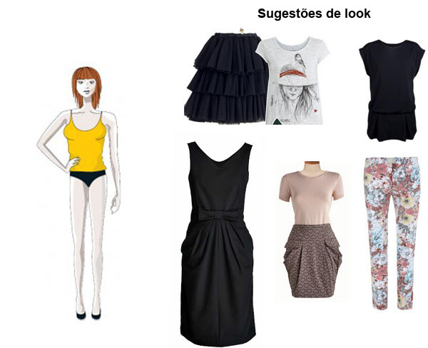 Ampulheta - Valorizar a cintura. A cintura pode ser marcada, use decotes em V ou em U, ficam sempre bem, no entanto não devem ser exagerados para não aumentar o tamanho do peito.
