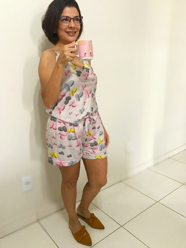 Um dos pontos fundamentais: se arrumar pra trabalhar em casa também eleva a autoestima. Eu sei que tem 1001 desculpas pra você achar que não tem nada a ver, mas vale à pena tentar adquirir esse hábito e usufruir dos benefícios, principalmente pra você que está em quarentena e não sabe quando vai voltar ao ambiente de trabalho. Segundo, quando a gente fica de qualquer jeito em casa, mandamos uma mensagem de desleixo e não merecimento para o nosso cérebro e tenho certeza que o nosso rendimento não é dos melhores. Tire um tempinho pra se arrumar, como se fosse sair. Escolha roupas adequadas, se o ambiente for meio quente prefira as roupas mais frescas, tecidos leves e que respirem. Se for trabalhar no ar-condicionado escolha uma mais quentinha, que vá te deixar à vontade. Como eu não estou recebendo clientes, gosto de bermudas e calças de malha, bem fresquinhas.