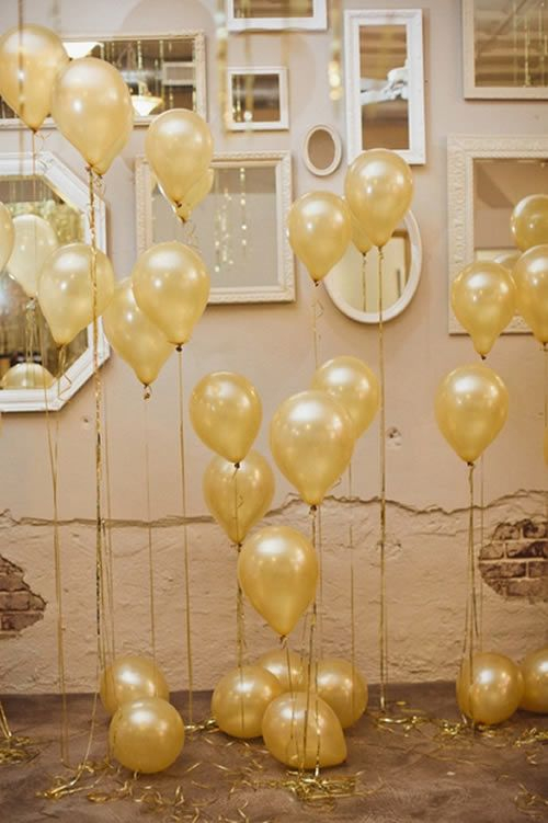 Balões prata ou dourados também podem ser uma excelente opção, basta prendê-los a um fitilho na mesma cor dos balões escolhidos e, pronto, a decor está perfeita!
