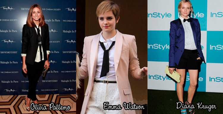 Nas últimas semanas algumas personalidades foram vistas usando looks bem masculinos, essa moda não é tão nova. Há algumas estações vimos peças como oxford, colete e outras sendo usadas pelas fashionistas. Agora, tá valendo até o look todo!