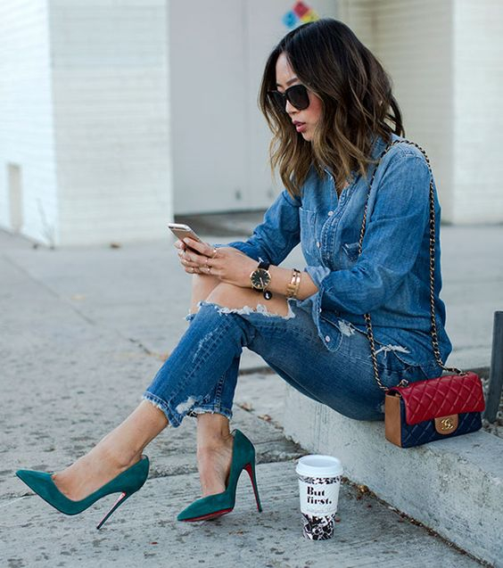 O jeans escuro é o mais adequado para ocasiões um pouco mais sérias e que o permitam. Mas, o que vai fazer a diferença são os complementos que você irá escolher para compor os looks. Scarpins, sandálias, bolsas ou carteiras de material de boa qualidade vão te ajudar a sofisticar o look!